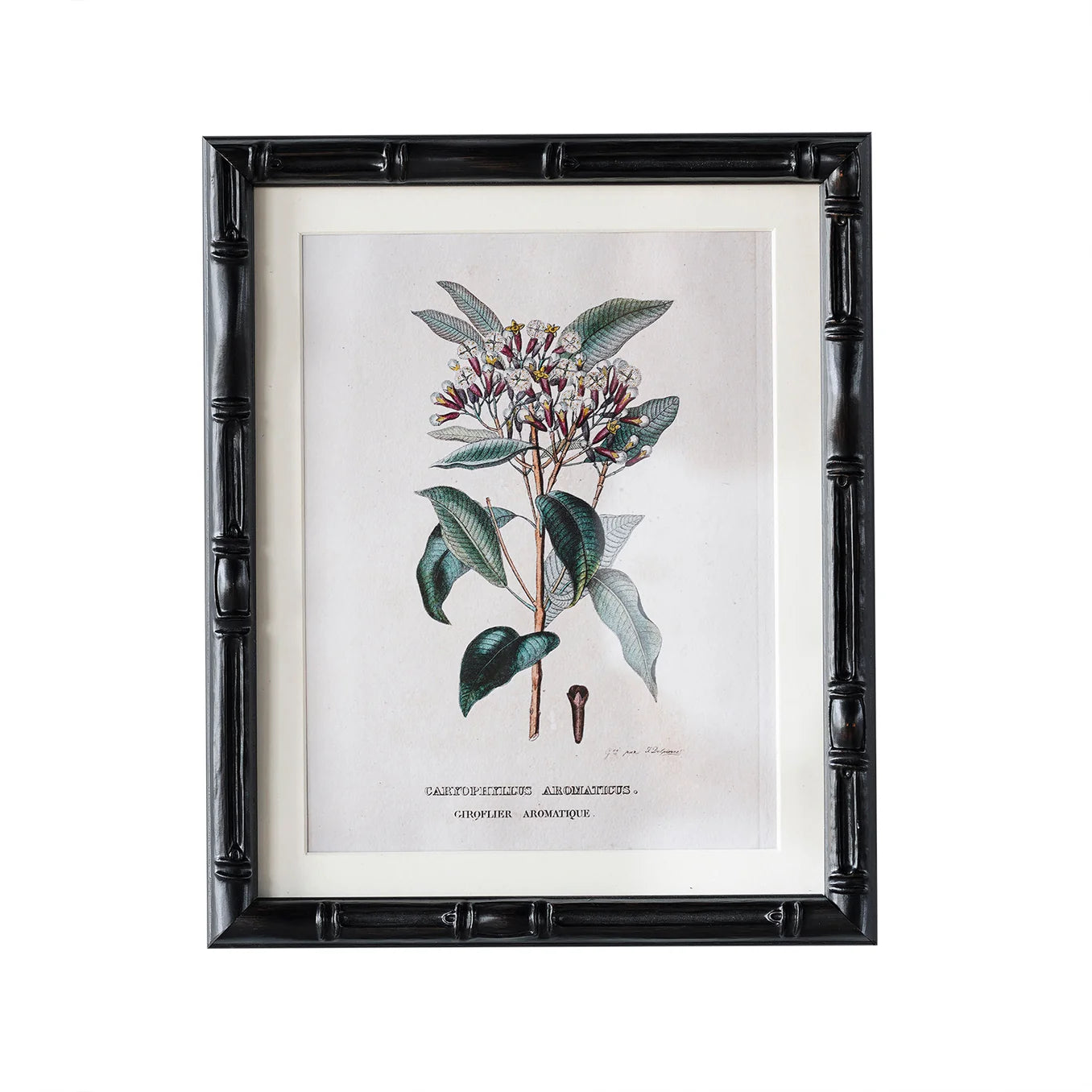 "The thin, faux-bamboo wood Castleford Matted Frames are dressed in a distressed-black finish that adds an historic charm. Each frame includes a vintage, art-paper print of colorful botanical studies. Both sides of the plexiglass are protected by two, peelable layers of film." - Blue Ocean Traders