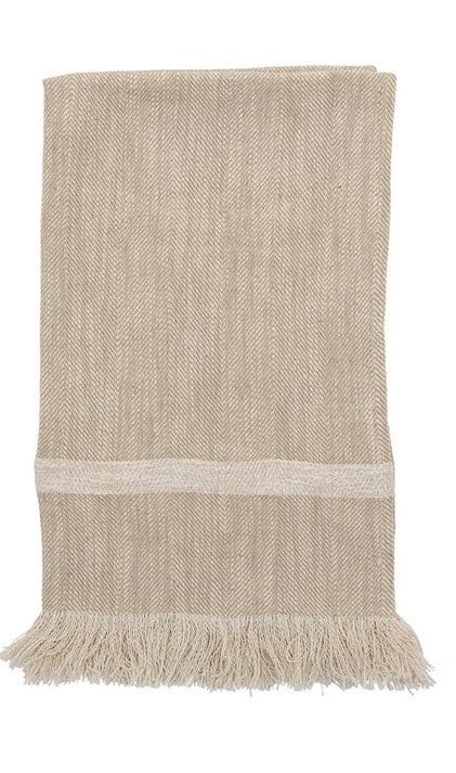 Cream Stripped Tea Towel w/ Fringe