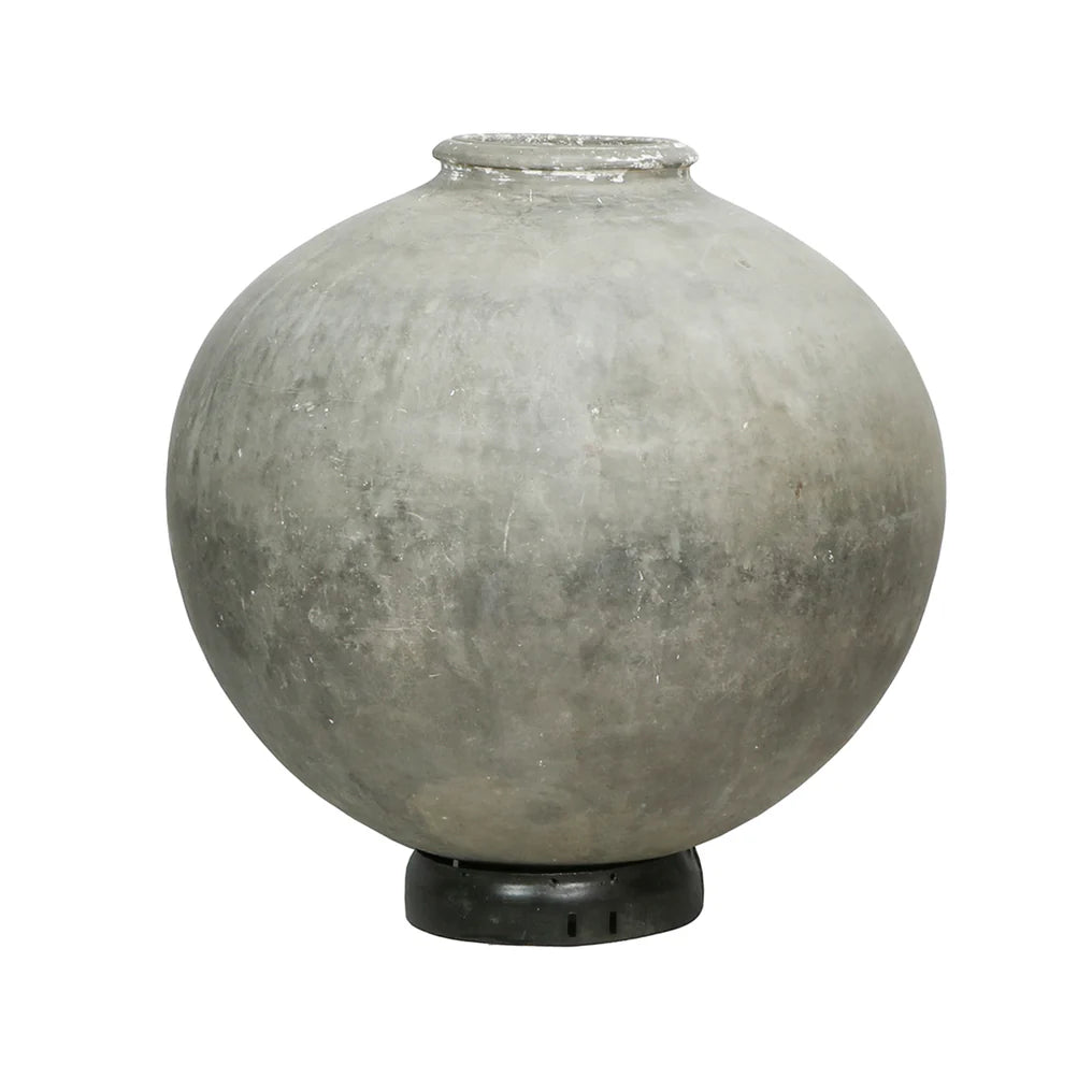 "Hand-shaped, vintage clay water pots now make a great floor or oversize accent. Fill with faux florals or use alone. The Mud Pot with Base is a large home accent that can serve a variety of decorative uses. Available in Large and Extra Large. Size and condition vary." - Blue Ocean Traders