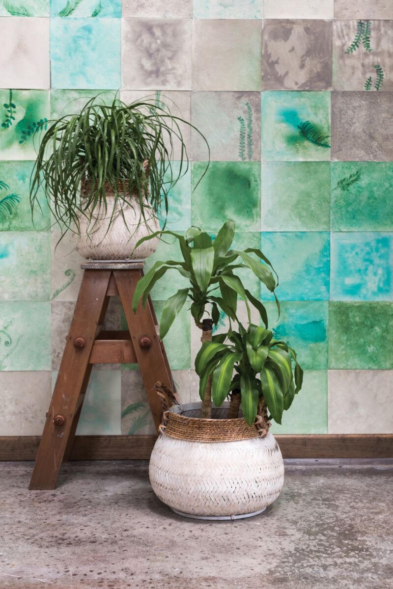 The popular Kota basket is made from hand-woven white-washed bamboo with think jute rope handles.